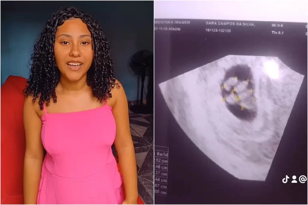 Nas redes sociais, Sara e o namorado, Renan Alves de Oliveira, de 20 anos, contaram como receberam a notícia. “Quando o médico falou que tinham dois corações batendo, eu sai da sala. Quando voltei, ele falou que tinham cinco. Comecei a chorar, passar mal. Minha pressão foi lá em cima”, contou Renan.
