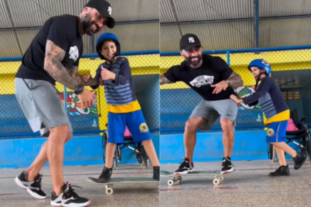 No sábado (2), um professor de educação física de Porto Velho, em Rondônia, viralizou nas redes sociais ao compartilhar um vídeo emocionante de um aluno com paralisia cerebral. Na gravação, Júlio Gonçalves, de 40 anos, grava o momento em que Luiz Felipe, de 9 anos, consegue ficar três segundos em pé no skate sem se apoiar.