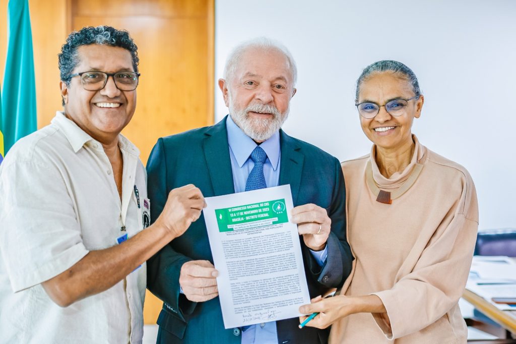 O presidente Luiz Inácio Lula da Silva e a ministra do Meio Ambiente e Mudança do Clima, Marina Silva, receberam a resolução criada após cinco dias de muitos debates e com a participação de aproximadamente 300 pessoas do Conselho Nacional das Populações Extrativistas (CNS) que, entre outros assuntos, reivindica políticas públicas para manter a floresta viva e fortalecer a economia da sociobiodiversidade.