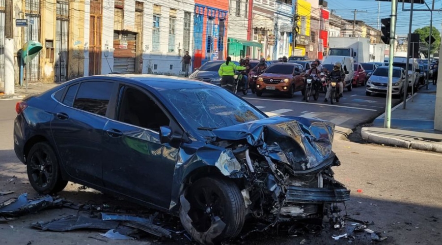 Um acidente envolvendo um carro e um micro-ônibus deixou três pessoas ficaram feridas na manhã desta quarta-feira (6), no cruzamento da ruas Luiz Antônio e 10 de julho, no Centro de Manaus.
