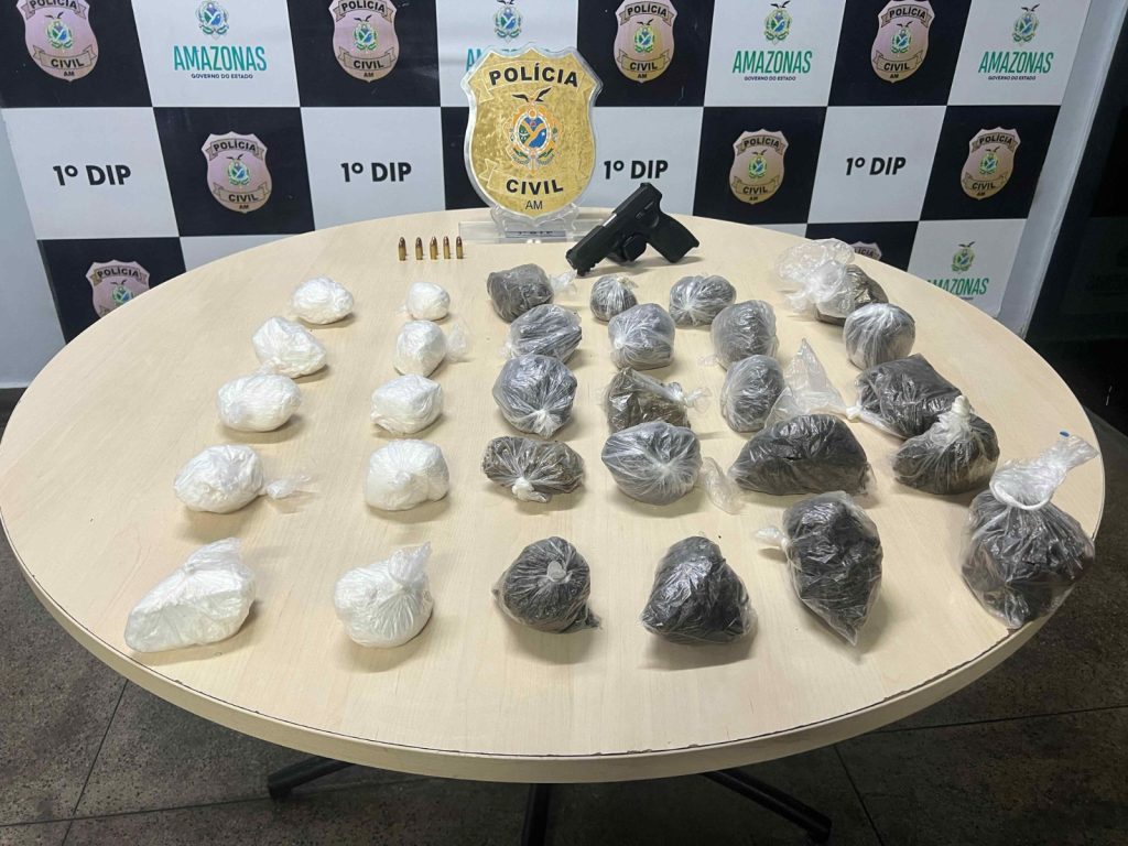 Manaus (AM) – Michel Silva de Lima, conhecido como “Dentinho”, apontado como um dos traficantes responsáveis pela distribuição de drogas no bairro Praça 14 de Janeiro, Zona Sul de Manaus, foi preso em flagrante, na quarta-feira (20), durante ação da Polícia Civil do Amazonas (PC-AM). Com ele, foram apreendidas porções de maconha e cocaína, além de armas e munições.
