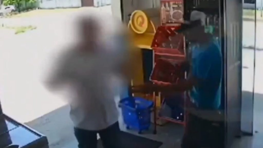 O vídeo é pausado exatamente no momento em que o bombeiro foi baleado, o ladrão conseguiu fugir.