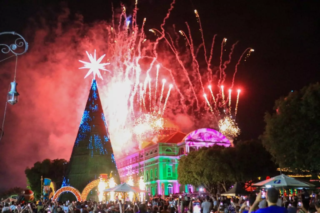 Telões serão espalhados pelo Largo de São Sebastião, permitindo que o público de diferentes pontos assista tanto os shows, quanto a contagem regressiva, tendo como pano de fundo o centenário Teatro Amazonas.