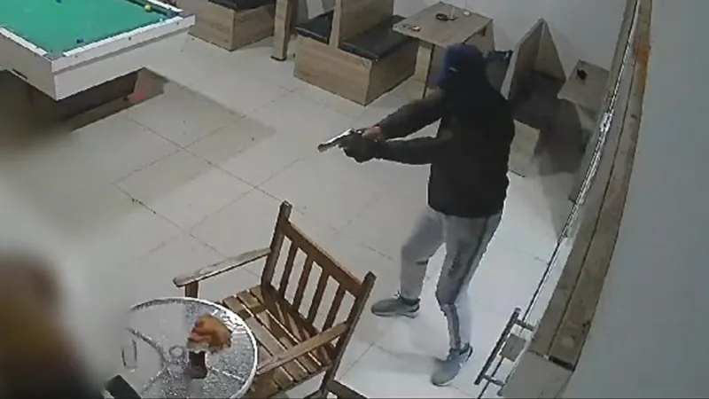Imagens de câmeras de segurança de um bar flagraram o momento em que um homem armado entra no estabelecimento e dispara contra os 18 clientes que estavam no comércio, localizado em Navegantes, cidade do Litoral Norte de Santa Catarina.