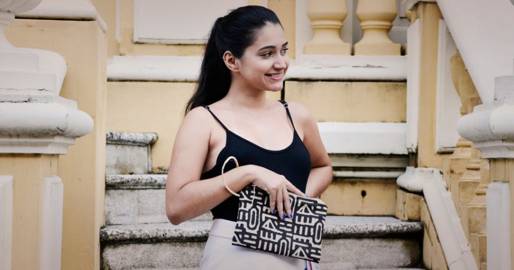 O interesse pelos trançados indígenas partiu da própria história familiar de Alice, que é descendente de uma tribo que já foi dizimada. “Os trançados a mão, feitos em viés 100% algodão, lembram os desenhos feitos em cestaria e tapetes. Lembram a Amazônia. Quero levar os grafismos dos povos indígenas para o Brasil inteiro”, revela Alice. A amazonense, que no começo do negócio ganhava R$ 1.500 por mês, hoje chega a faturar R$ 6 mil como microempreendedora individual (MEI).