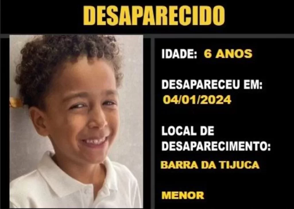 A Polícia do Rio de Janeiro confirmou que o menino Édson Davi Silva Almeida, de 6 anos, que está desaparecido desde quinta-feira (4), ainda não foi encontrado. A criança foi vista pela última vez na Barra da Tijuca, zona oeste do RJ.