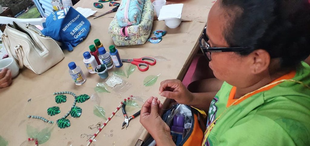Neste ano, após conseguir, aprovação em um novo edital “Manaus Faz Cultura”, pela Manauscult/Prefeitura de Manaus, Michelle voltou a ministrar uma nova rodada de formação. Esse mês levou seu conhecimento para um grupo de mulheres do Coletivo REUSA, com sede no bairro da Redenção, através do minicurso ECOJOIAS – Reutilizando com Arte, com duração de três dias. A turma com 16 participantes eprendeu a arte de transformar simples garrafas em ecojoias.