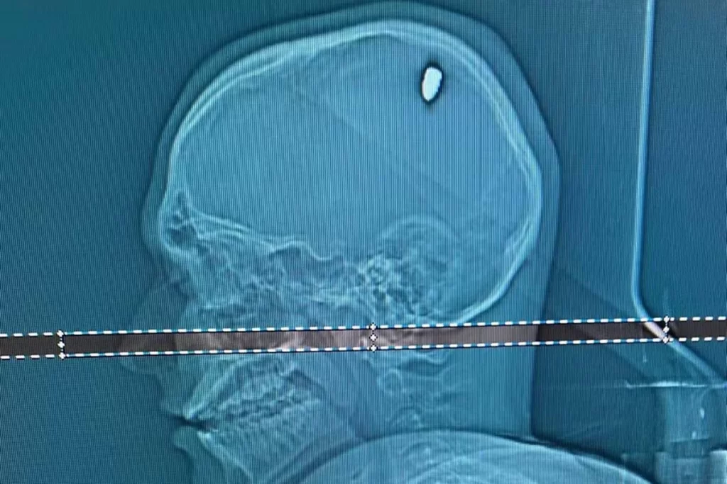 Um exame de tomografia mostrou que Mateus estava com uma bala alojada na cabeça. “Parte dela penetrou no cérebro. Isso causou compressão da região, e os movimentos involuntários do braço”, explica o neurocirurgião Flávio Falcometa.