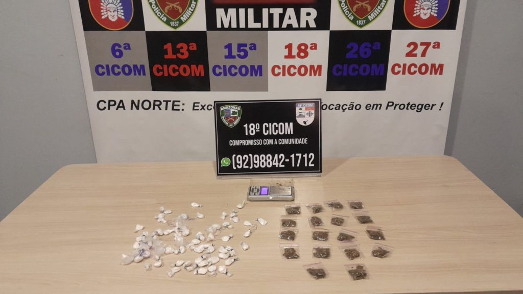 Manaus (AM) – Um homem, de 23 anos, foi preso com trouxinhas de maconha e cocaína, na tarde desta quarta-feira (31), no bairro Colônia Santo Antônio, Zona Norte de Manaus, durante operação da Polícia Militar do Amazonas (PMAM).