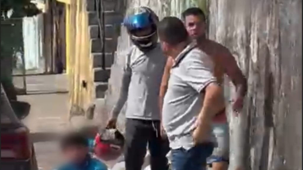 Testemunhas registram também o momento que motociclistas chegam ao local e atingiram o motorista com capacetes.