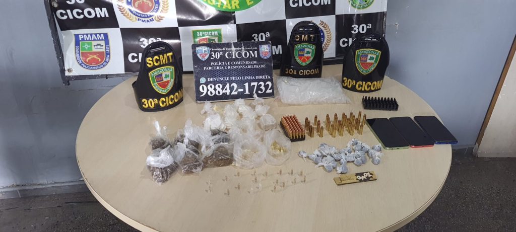 Manaus (AM) — Um homem, de 23 anos, foi preso por tráfico de drogas e porte de munições de uso restrito e permitido, após denúncia, na quinta-feira (8), na rua Jerusalém, bairro Valparaíso, Zona Leste de Manaus.