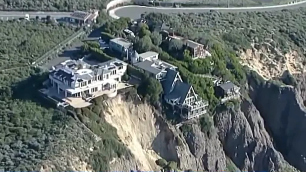 Três mansões em Dana Point, na Califórnia, ficaram à beira de um penhasco no litoral, após fortes chuvas deslocarem parte da costa em que as casas estão localizadas. A informação foi divulgada pela ABC News.