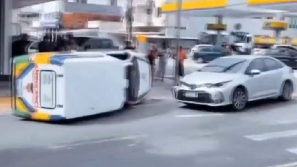 Ambulância capota em avenida do Centro de Manaus; veja vídeo pic.twitter.com/Okgbr6nSDd