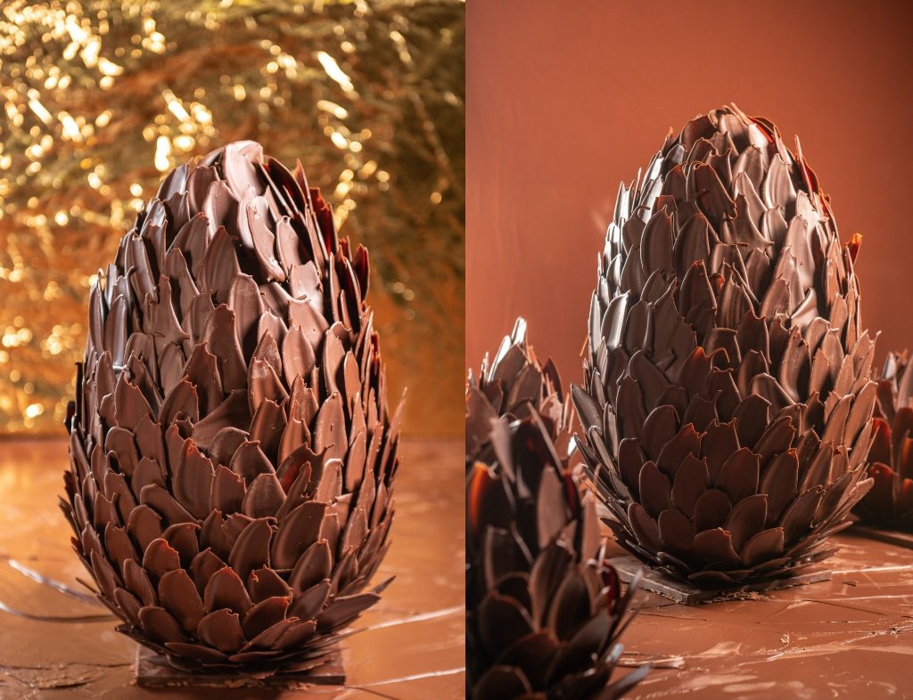 Outra grande surpresa é o “ovo amazônico”, que é decorado a partir de técnica de pintura francesa de chocolate e que remete à flora da região, com folhas em tons mais fortes.