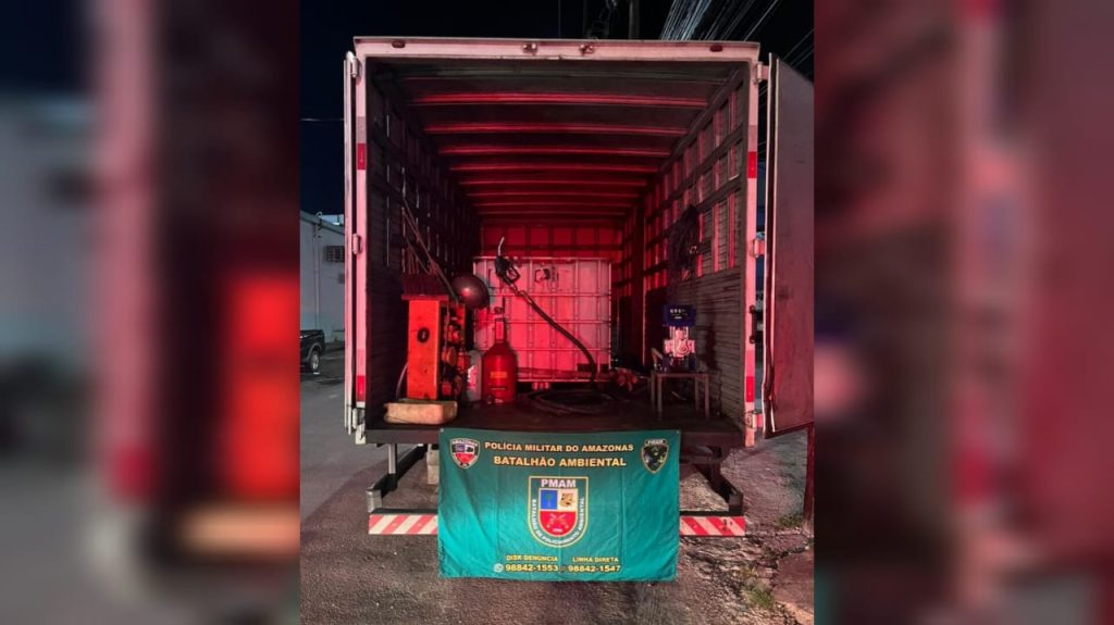 Caminhão baú é apreendido, nesta sexta-feira (8), na Rodovia AM-010, por transporte irregular de combustível. A Polícia Militar do Amazonas (PMAM), por meio do Batalhão de Policiamento Ambiental (BPAmb) foi responsável apreensão.