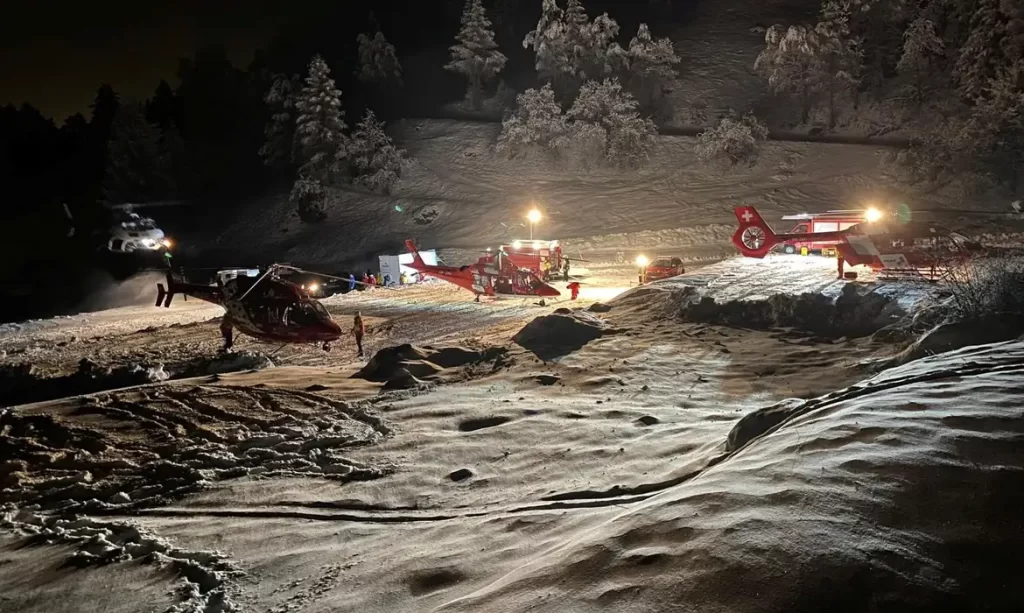Nesse domingo à noite, uma equipe de três socorristas e um policial da unidade de montanha puderam ser transportados de helicóptero “para perto da cabana Dent Blanche”, disse a polícia.