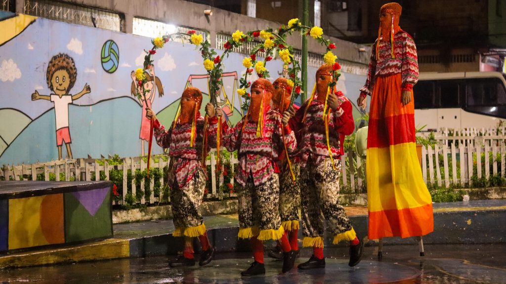 O espetáculo é inspirado em três manifestações culturais latino-americanas: Fiesta de la Tirana (Chile), Huaconada (Peru) e Cavalo-Marinho (Brasil). Os artistas performatizam envolvendo expressões artísticas, como dança, teatro e circo. A estética visual marca por suas cores fortes e vibrantes, e os personagens usam máscaras de Fofão – figura do tradicional Carnaval Maranhense.