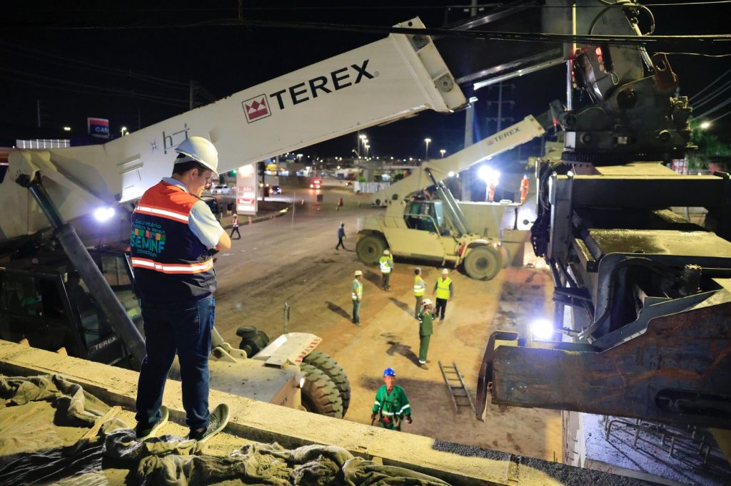 “Hoje, a primeira viga protendida é colocada. Ela foi içada e colocada aqui no local. Podemos dizer que nossa primeira noite de transporte e implantação foi concluída com sucesso. Trabalharemos durante toda a madrugada de sábado e domingo, para acelerar os serviços”, acrescenta Renato Junior.