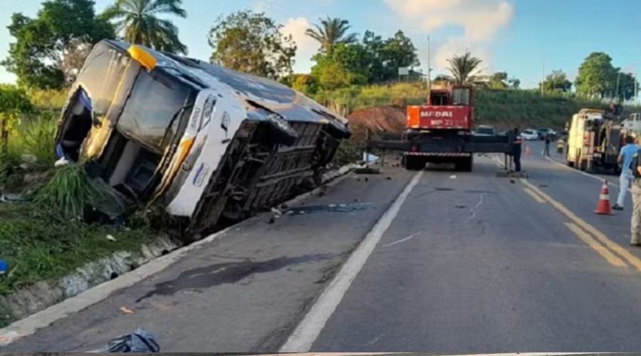 Um acidente com um ônibus de turismo deixou nove mortos, além de 23 feridos, na BR-101, na Bahia. O veículo, que tinha 34 pessoas a bordo, tombou depois de bater em um barranco, na cidade de Teixeira de Freitas, por volta das 4h30 da madrugada desta quinta-feira (11).