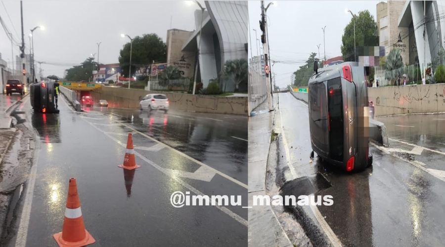 A chuva que atinge Manaus desde as primeiras horas da manhã desta sexta-feira (12) tem causado transtornos no trânsito. Em um dos casos, um carro capotou na avenida Umberto Calderaro, no bairro Adrianópolis, na Zona Centro-Sul de Manaus. Não houve feridos.