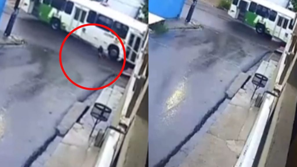 Nas imagens, é possível ver o veículo dando ré, no momento em que o assaltante pula por uma janela, e por pouco não é atingido pela roda dianteira do coletivo.