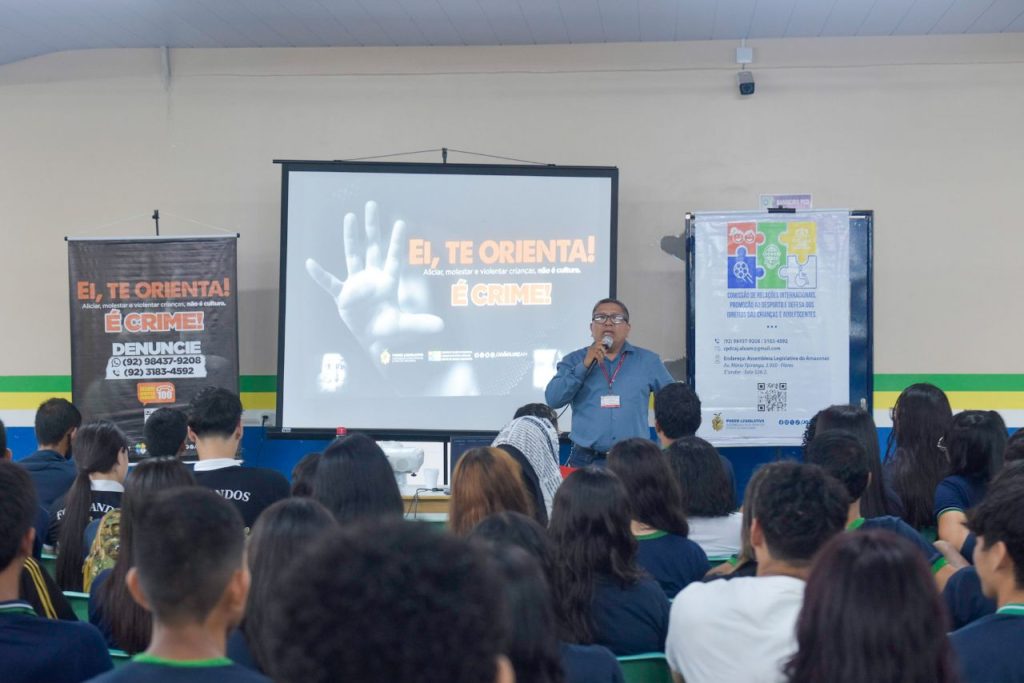 A Comissão de Relações Internacionais, Promoção ao Desporto e Defesa dos Direitos das Crianças e Adolescentes da Assembleia Legislativa do Amazonas (Aleam), presidida pelo deputado estadual João Luiz (Republicanos), levou na quarta-feira (24), duas palestras, sendo uma sobre crime cibernéticos e outro pelo “Ei, Te orienta! Aliciar, molestar e violentar crianças, não é cultura. É crime!”, para a Escola Estadual Maria da Luz Calderaro, localizada no conjunto Hiléia, no bairro Redenção, na zona Centro-Oeste de Manaus.