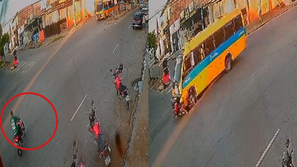 Manaus (AM) – Câmeras de segurança da Avenida Curaçao, localizada no bairro Nova Cidade, Zona Norte de Manaus, flagraram o momento em que um micro-ônibus “Amarelinho” colidiu com o motociclista Luciano Moraes de Jesus, de 44 anos. O homem morreu no local.