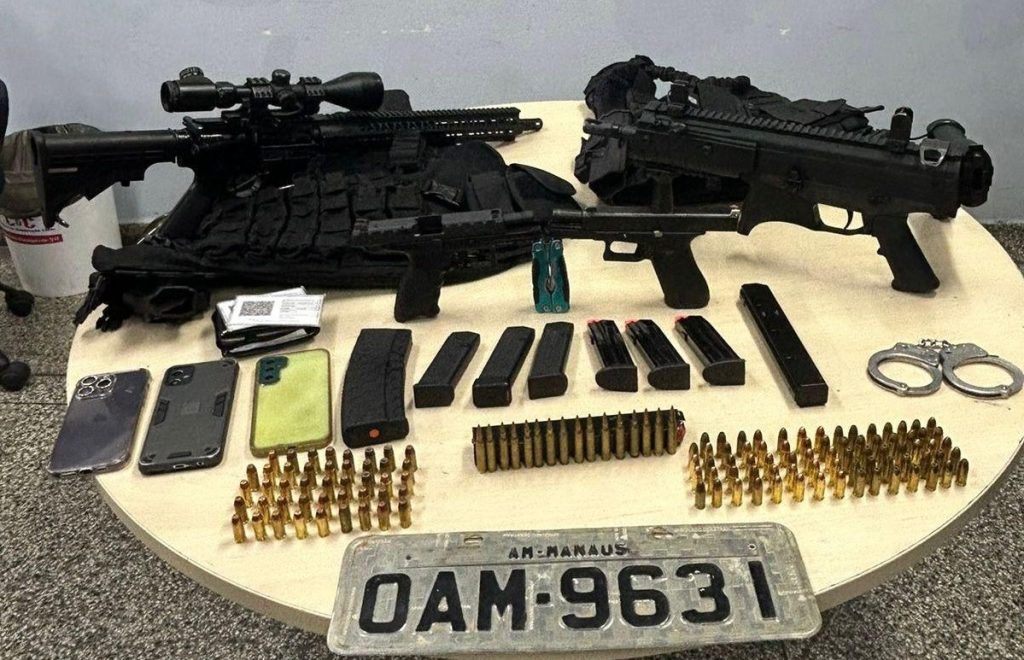 Manaus (AM) — Um cabo da Polícia Militar, identificado como Marçal Canigia Frazão Correa, e outro homem, foram presos, no domingo (19), suspeitos de sequestrar uma família com um bebê de 2 anos, no estacionamento de uma drogaria no bairro Manoa, Zona Norte de Manaus. Os policiais militares da Força Tática encontraram com os sequestradores armas, munições e coletes a prova de balas.
