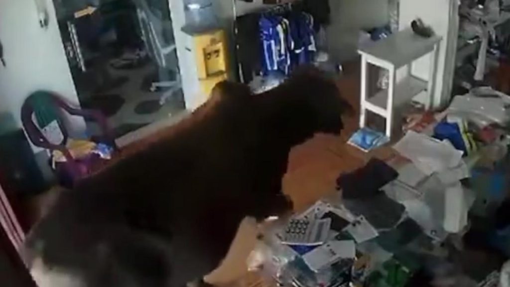 As imagens mostram o momento em que o animal entra no ateliê, assustando os funcionários do local. Para se proteger, a população se escondeu dentro do imóvel e aguardou o animal deixar o comércio.