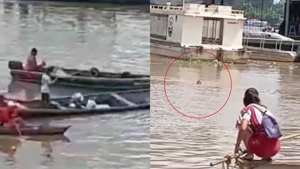 Um vídeo que circula nas redes sociais mostra o momento em que a mãe do rapaz pega uma canoa e começa a remar em direção a ele, mas na hora que ela pula na água, o rapaz já tinha desaparecido nas águas.