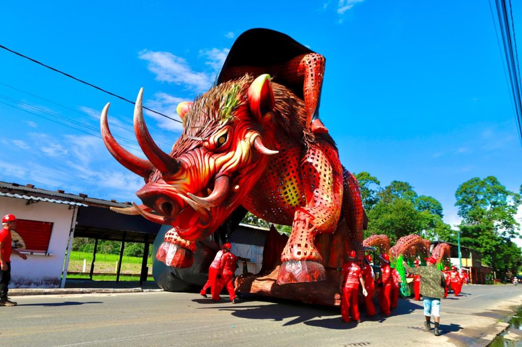 Parintins (AM) – O Boi-Bumbá Garantido iniciou, nesta segunda-feira (10), o translado das alegorias que comporão o espetáculo artístico-alegórico na arena do Bumbódromo nas três noites do Festival Folclórico de Parintins em 2024. A operação iniciou com salva de fogos de artifícios durante todo o trajeto, uma forma de anunciar que a festa vai começar.