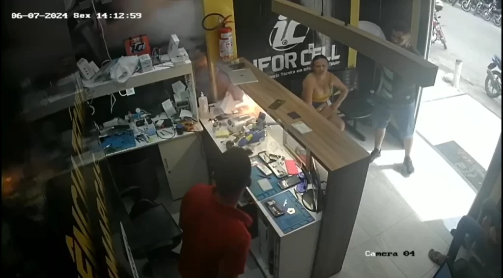 Boa Viagem (CE) – A bateria de um celular pegou fogo dentro de uma assistência técnica durante um procedimento de manutenção em Boa Viagem (CE). O momento foi flagrado por uma câmera de segurança do estabelecimento comercial.