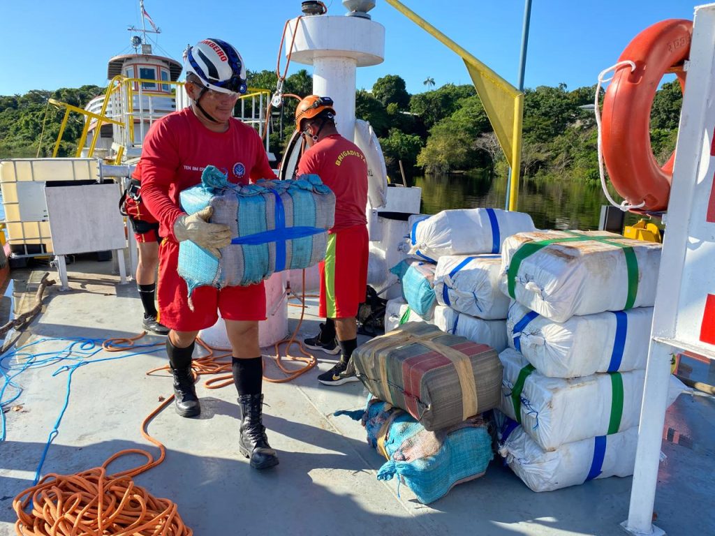 “A Polícia Militar suspeitou da embarcação, os nossos cães conseguiram identificar o entorpecente, mesmo sendo uma embarcação de transporte de combustível. A partir daí, como tinha uma dificuldade de adentrar para identificar e fazer retirada das drogas, precisamos do apoio do Corpo de Bombeiros, que fez esse adentramento e o regaste da droga, que estava em uma parte de combustível”, falou o comandante-geral da PMAM, coronel Klinger Paiva.