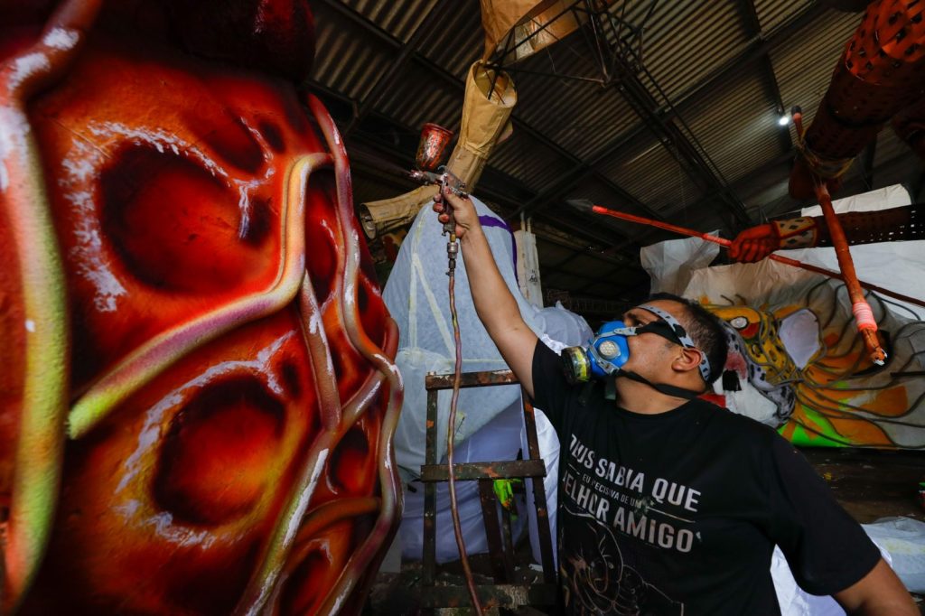 Somente na área de montagem, pintura e finalização das alegorias, são 340 trabalhadores finalizando todos os módulos, segundo o diretor do galpão, Osório Melo.