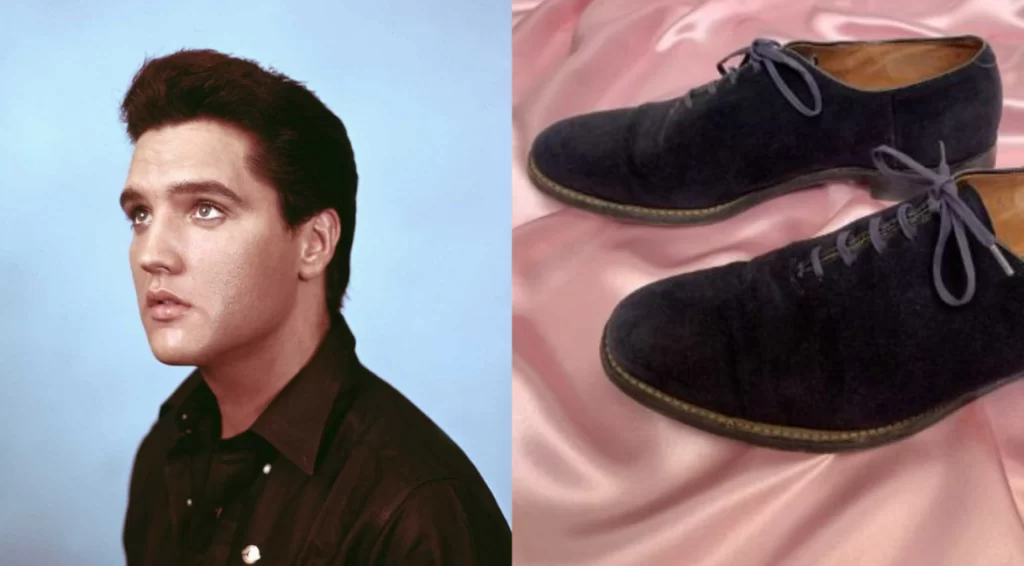 Elvis usou os sapatos enquanto cantava “I Want You, I Need You, I Love You” e “Hound Dog” no The Steve Allen Show em 1956, segundo o leiloeiro, e deu o par ao seu amigo Alan Fortas em 1958, na noite anterior à sua partida para o Exército dos Estados Unidos.