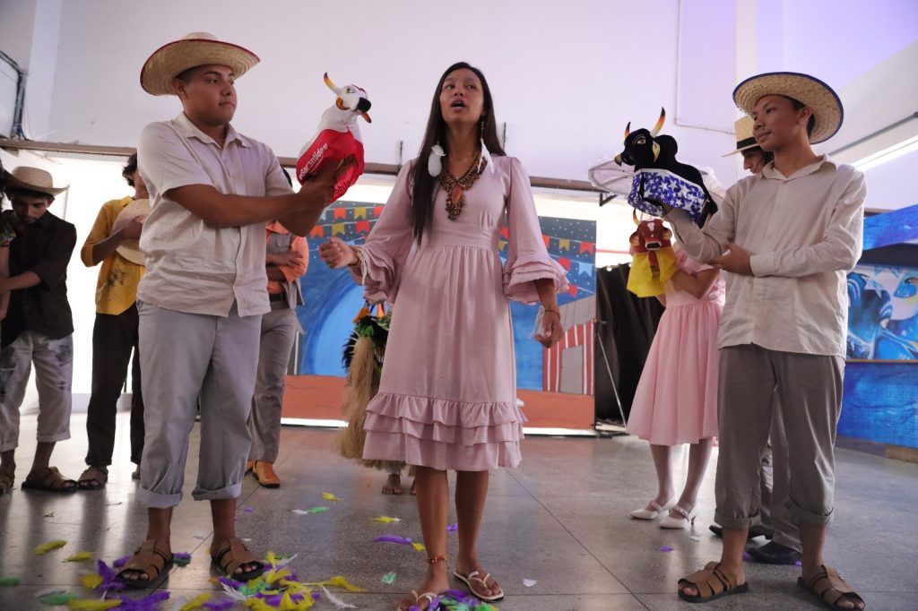 Este ano, uma novidade levou a história teatralizada da origem dos bois-bumbás de Parintins com o espetáculo Parintins Folclore em Festa. “Foi uma proposta do secretário Marcos Apolo, de nós trabalharmos junto com a visita mediada do Centro Cultural de Parintins, uma proposta de pesquisa que contasse aos visitantes um pouco do início dos bumbás, contando um pouco da cidade, do folclore”, conta Thiago Oliveira, autor e diretor da peça.