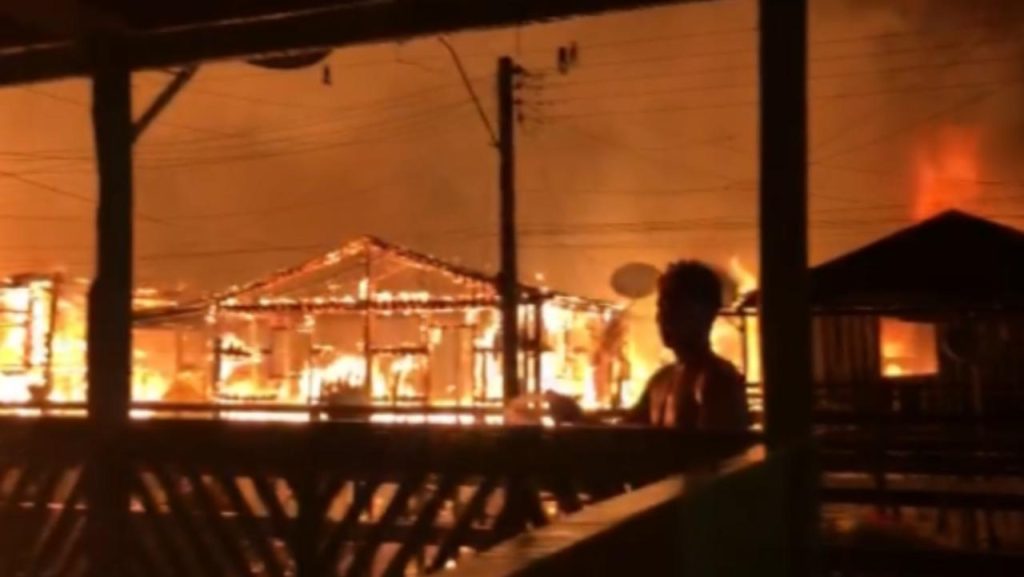 Ao menos 13 casas foram destruídas, uma criança morreu e quatro pessoas ficaram feridas durante um incêndio de grandes proporções na madrugada desta segunda-feira (15), em Nhamundá, no interior do Amazonas.