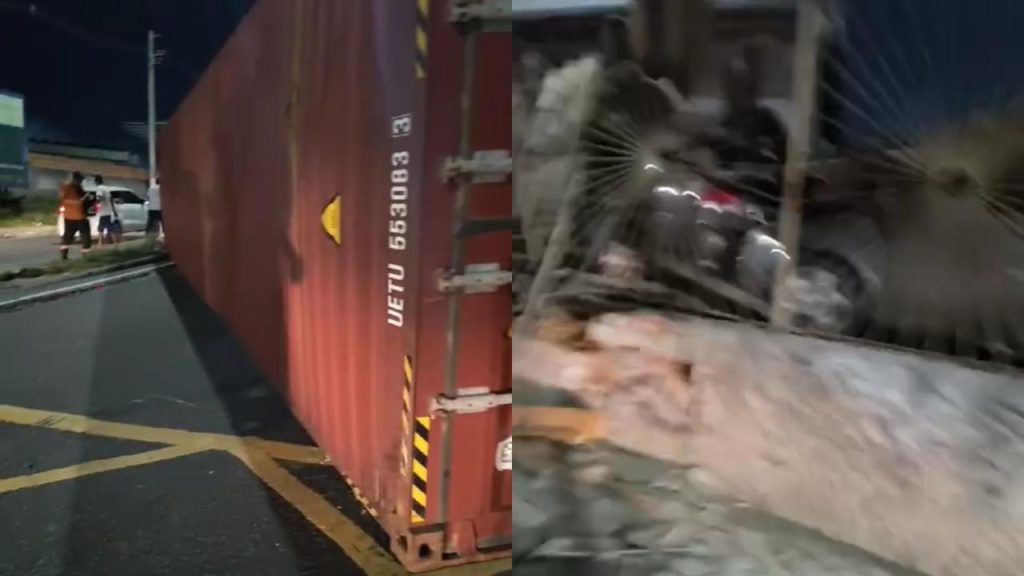Uma carreta tombou e atingiu um muro de uma casa na noite desta segunda-feira (22), na avenida Rodrigo Otávio, bairro Crespo, Zona Sul de Manaus.