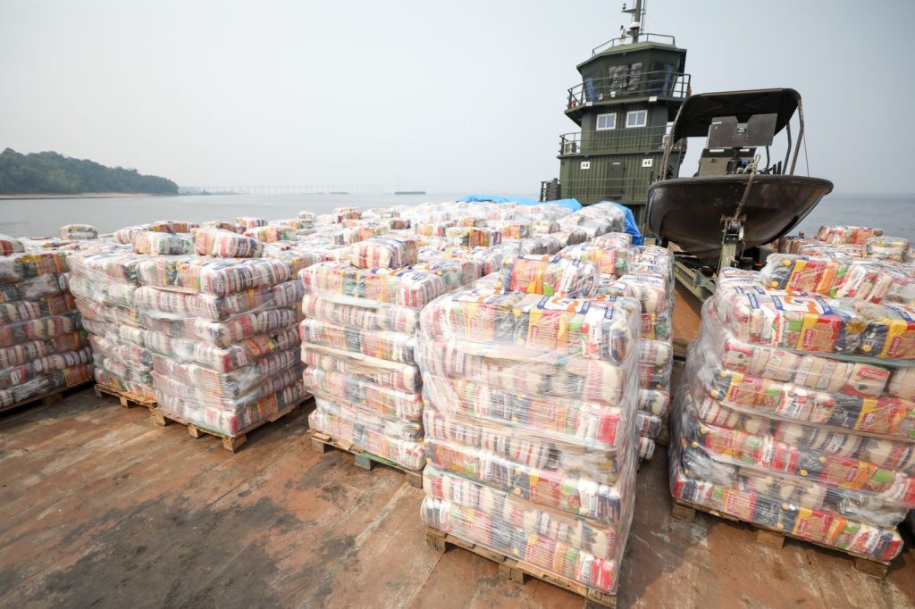 A operação logística, coordenada pela Defesa Civil do Amazonas e que conta com o apoio das Forças Armadas, vai enviar mais de 220 toneladas de alimentos, além de caixas para armazenamento de água e purificadores fixos do projeto Água Boa, para nove municípios.
