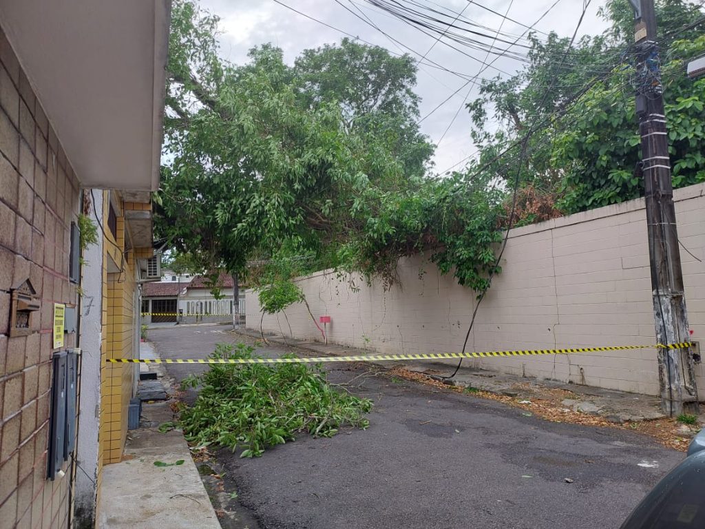 Uma árvore de grande porte caiu sobre a rede elétrica e deixou moradores sem energia, no Bairro Dom Pedro, em Manaus. O acidente aconteceu durante a tarde desta quarta-feira (14).