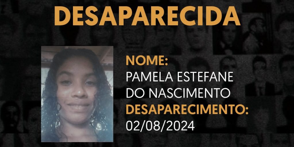 A Polícia Civil do Amazonas (PC-AM) divulga a imagem de Pamela Estefane do Nascimento, de 21 anos, que foi vista pela última vez no dia 2 de agosto deste ano, na rua Jerusalém, bairro Gilberto Mestrinho, Zona Leste de Manaus.