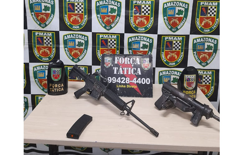 Manaus (AM) – Após operação policial, equipes da Força Tática apreenderam na tarde desta terça-feira (8), um fuzil e uma submetralhadora que haviam sido enterrados por criminosos em um terreno baldio. O caso ocorreu por volta das 17h45, rua 28, do Vale do Sinai, na Zona Norte de Manaus.