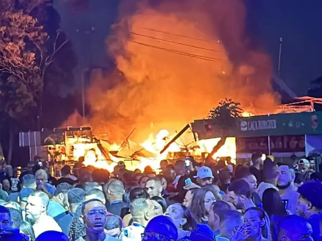 Um incêndio atingiu parte da praça de alimentação de um centro de convenções durante um festival de samba em Olinda, Pernambuco, no último sábado (28). As chamas se espalharam rapidamente, mas o show do cantor Thiaguinho continuou, apesar do incidente.