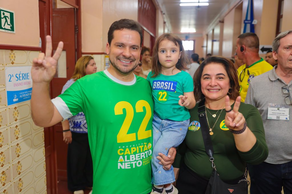 O candidato a prefeito de Manaus do PL, Capitão Alberto Neto, votou junto a sua família no Colégio Nossa Senhora Auxiliadora, bairro Centro, na Zona Sul de Manaus, na manhã deste domingo (6).