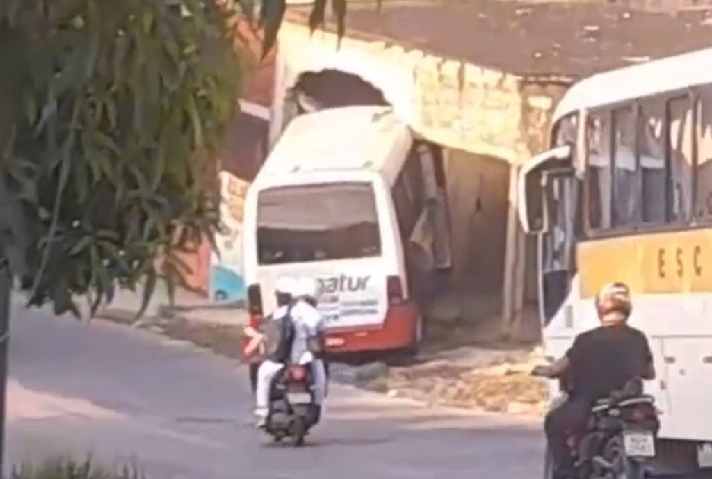 Uma moradora do local registrou o acidente. Segundo informações da comunidade, o motorista do micro-ônibus não conseguiu controlar o veículo ao fazer uma curva, colidindo com a garagem da casa.