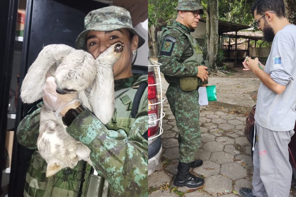 O mamífero e a ave foram conduzidos para o Centro de Triagem de Animais Silvestres (CETAS) do Instituto Brasileiro do Meio Ambiente e dos Recursos Naturais Renováveis (Ibama), para atendimento veterinário.