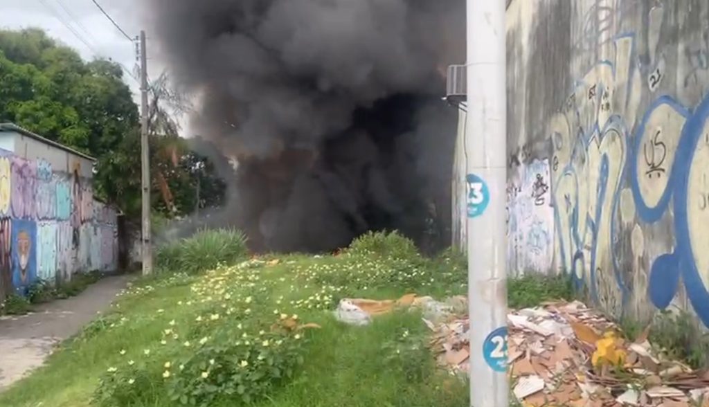 Um vídeo que circula nas redes sociais mostra uma intensa fumaça se alastrando pela área.