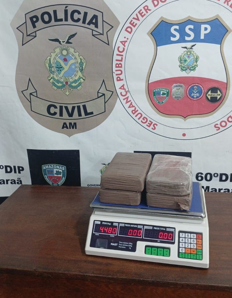 A Polícia Civil apreendeu 4,5 kg de cocaína, avaliados em R$ 300 mil, na quarta-feira (16), durante uma fiscalização em uma embarcação no porto de Maraã, no interior do Amazonas.