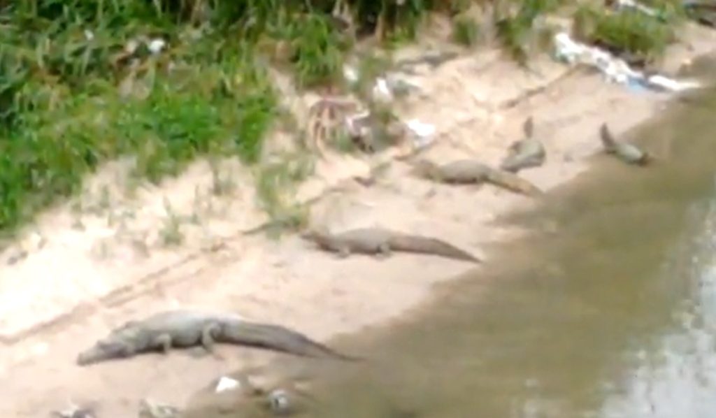 Manaus (AM) – Um grupo de jacarés foi flagrado tomando um “banho de sol”, no Igarapé do Passarinho, localizado no bairro Colônia Terra Nova, na Zona Norte de Manaus. O flagra foi feito ao lado de um shopping da capital.