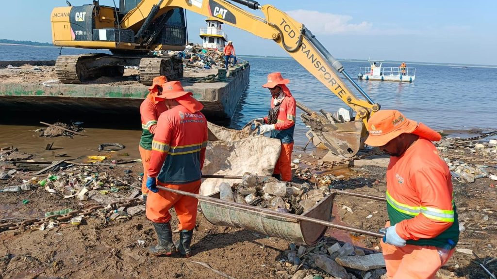 A Prefeitura de Manaus está realizando uma operação intensiva e permanente na orla do rio Negro. Com a baixa no nível das águas, uma quantidade ainda maior de lixo acumulado se tornou visível nas margens, incluindo pedaços de madeira, restos de embarcações, plásticos, garrafas PET, latas, vidros, restos de animais, entre outros resíduos que prejudicam a paisagem natural das praias.